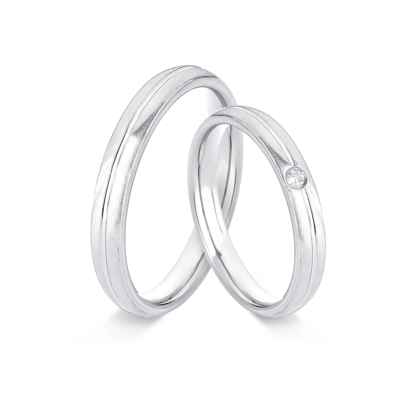 Modelo com friso liso central, uma pedra de zircônia e acabamento acetinado.