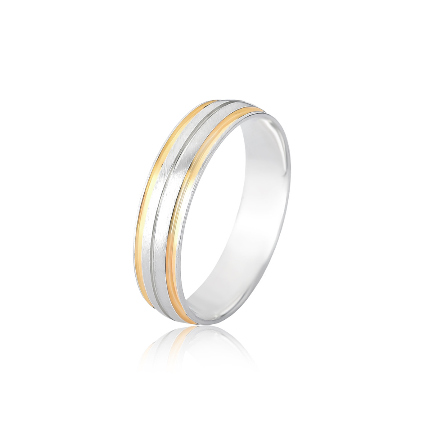 Aliança com friso liso no centro, e bordas com caneta de ouro