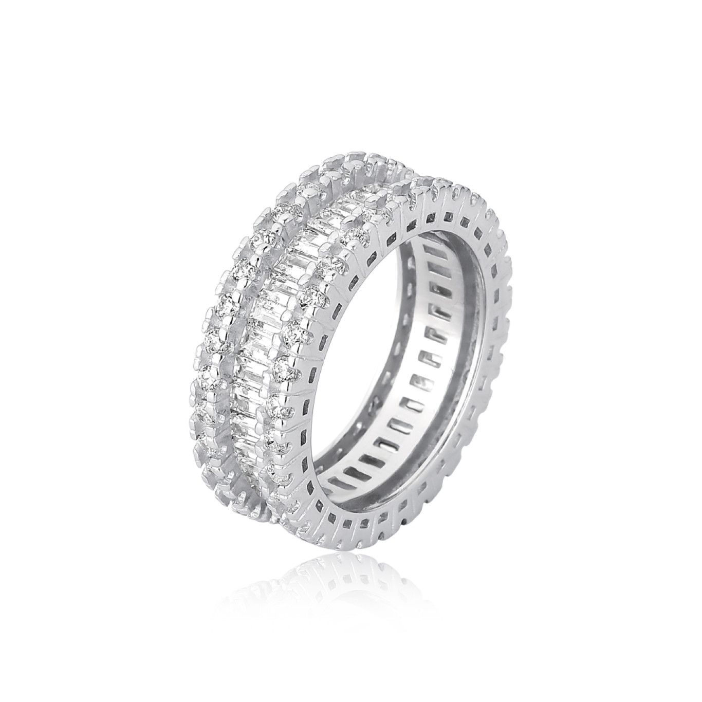 Modelo largo todo cravejado com zircônias baguetes na parte central.