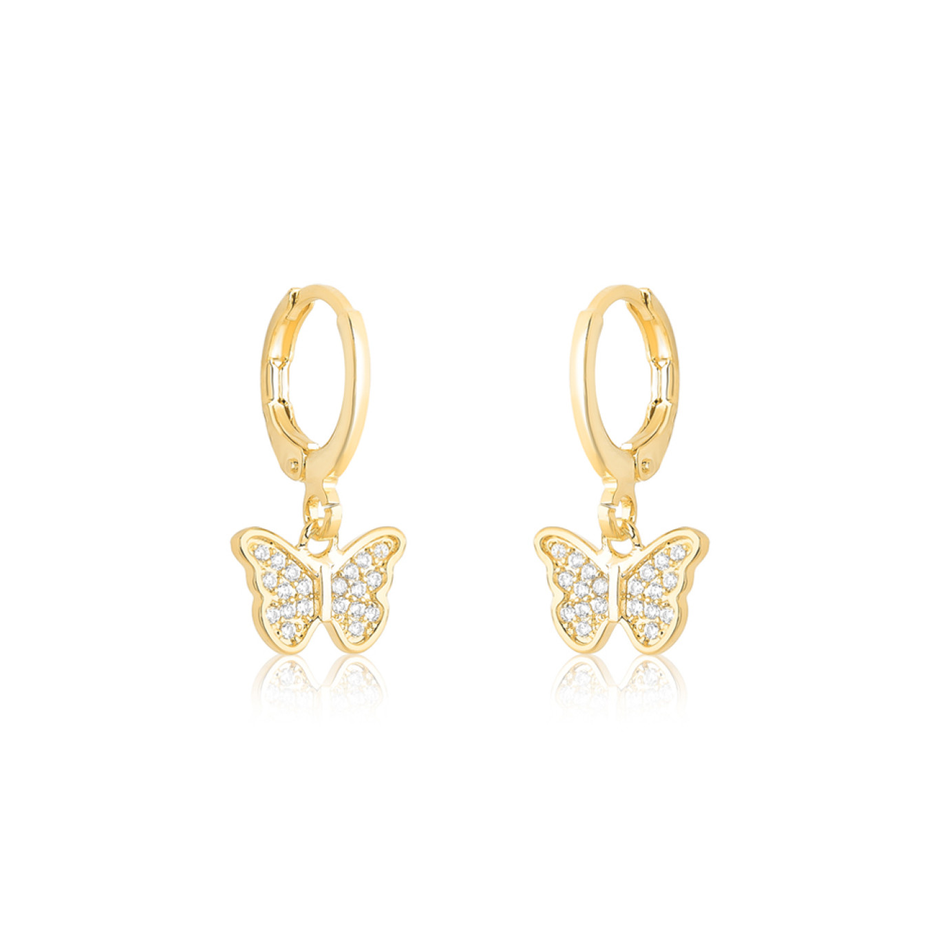 Delicadas argolas. Possuem fecho click para maior segurança e conforto. O pingente de borboleta cravejada com zircônias adiciona um toque de brilho e charme, perfeito para complementar qualquer look.