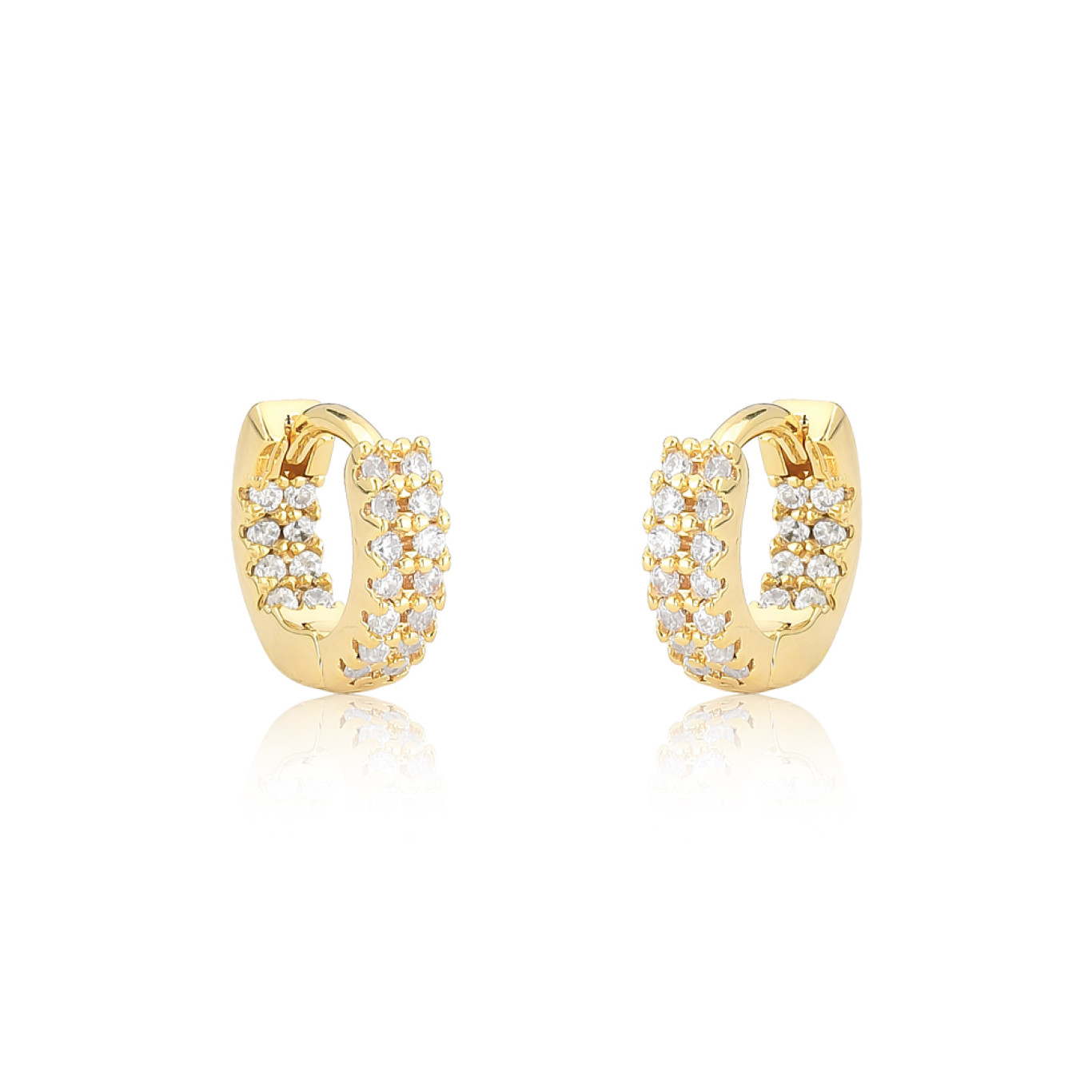 Argola Click 2 Fileiras Cravejadas c/ Cravação Interna (2x7) 10mm Folheada a Ouro 18k