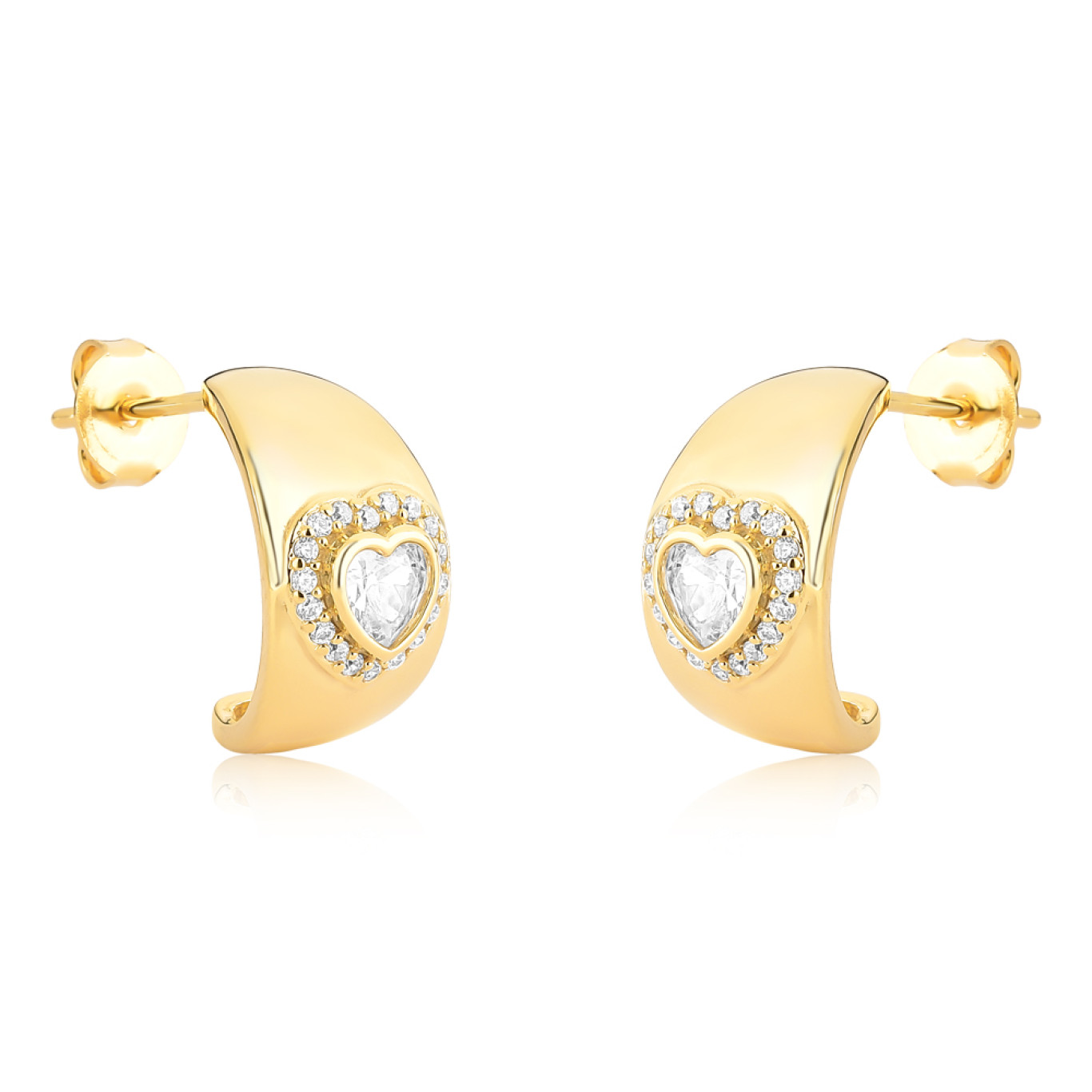 Argola Lisa c/ Zircônia Coração Folheada a Ouro 18k