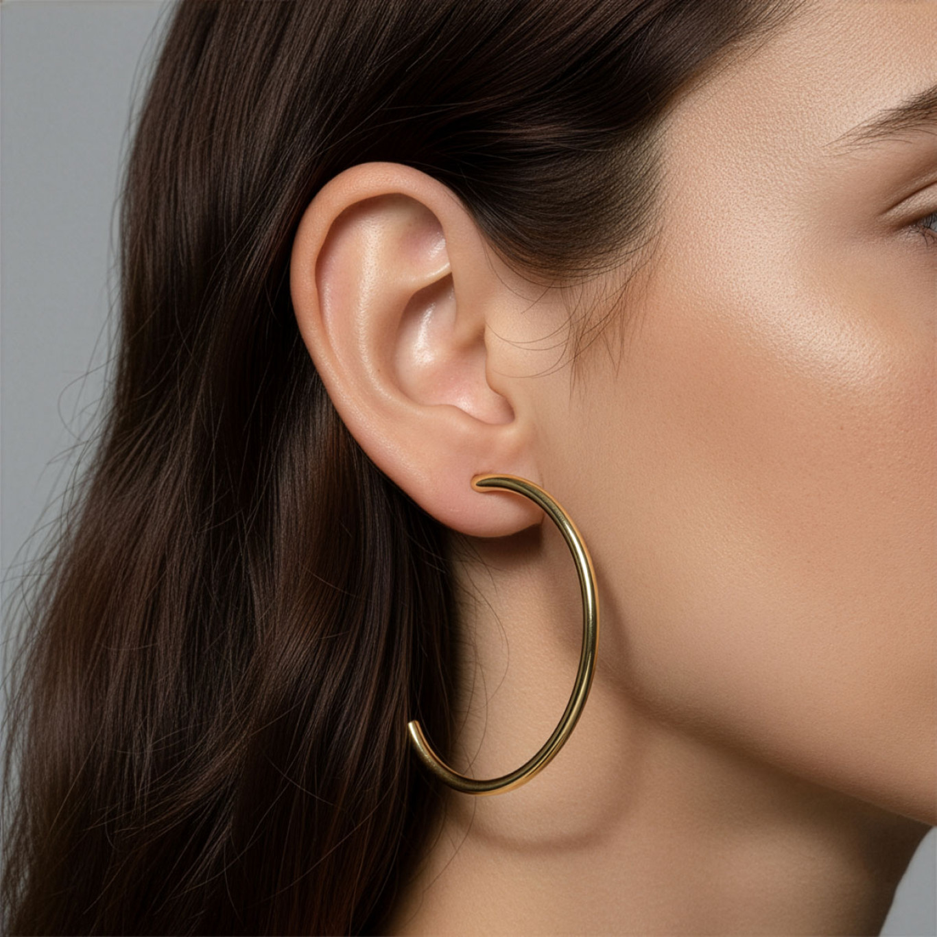 Argola Tubo c/ Tarraxa 5,5cm Folheada a Ouro 18k