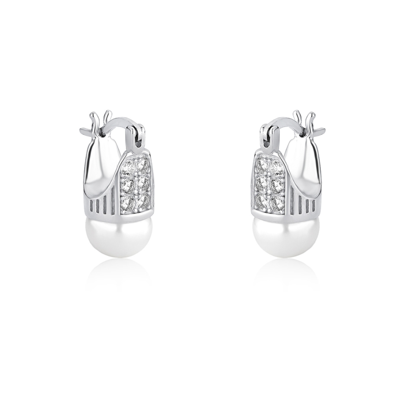 Brinco Prata c/ Ródio Lady Di Pérola Natural Cravejado