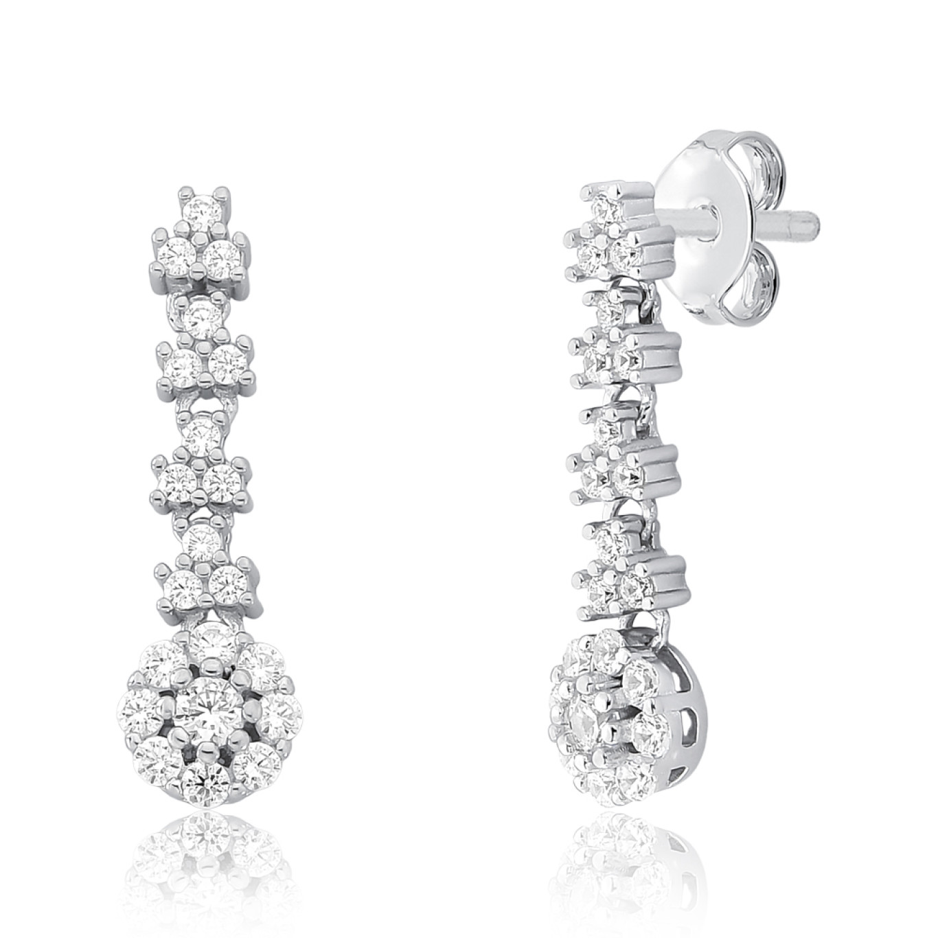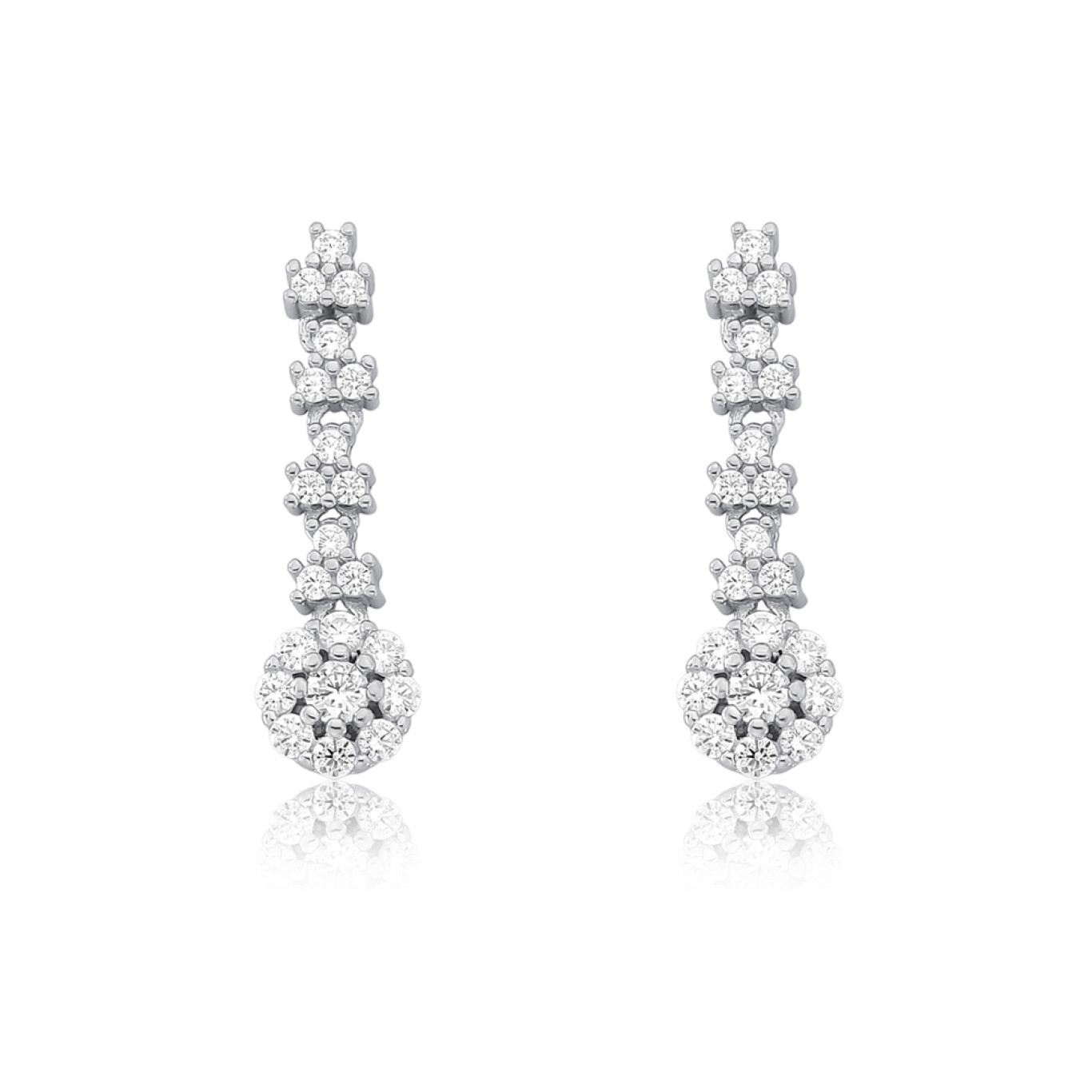 Brinco de pino com uma flores suspensas e zircônia cravejadas.