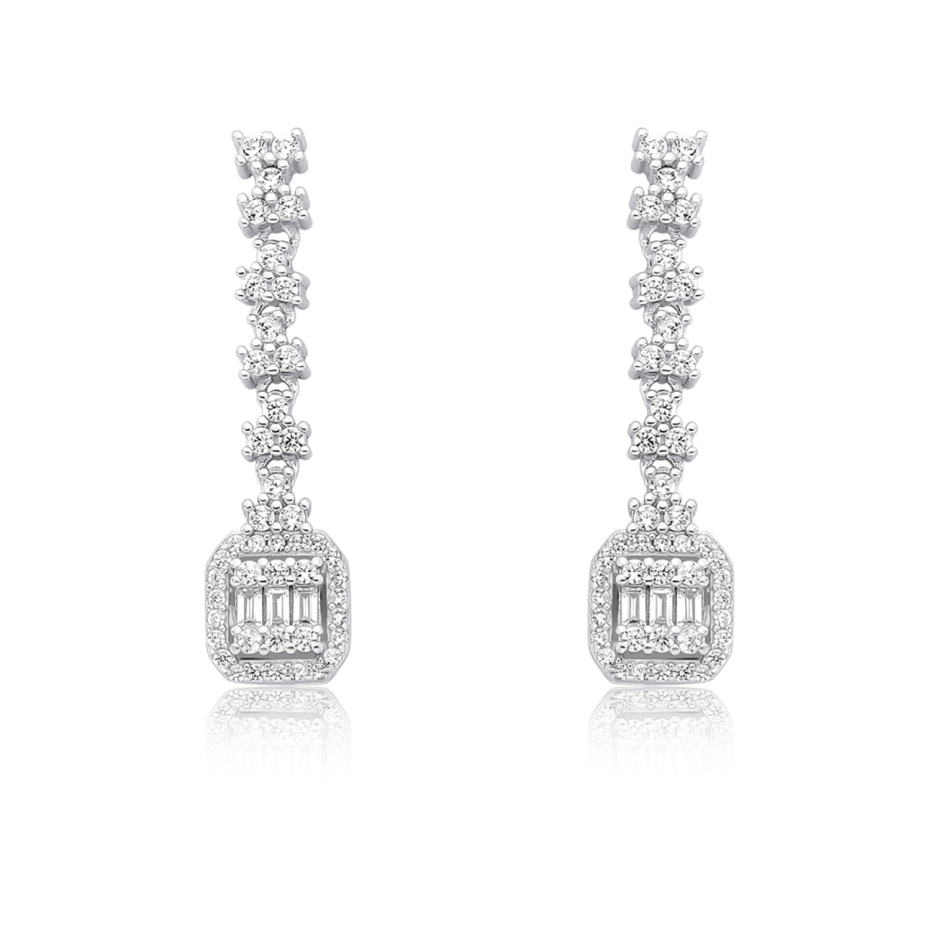 Brinco de pino cravejado com zircônia e quadrado suspenso.