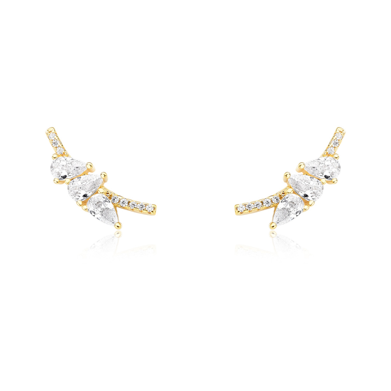Modelo ear cuff três zircônias gota centrais e lateral cravejada em zircônia.