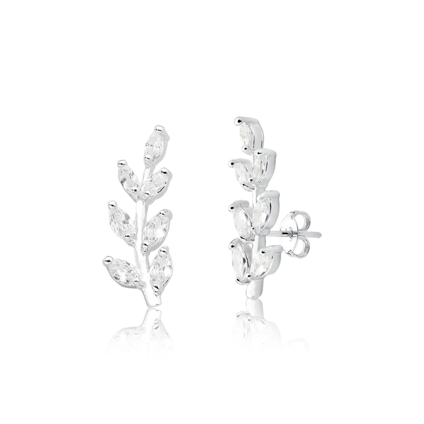 Modelo ramo com folhinhas cravejadas c/ pedras de zircônia.
