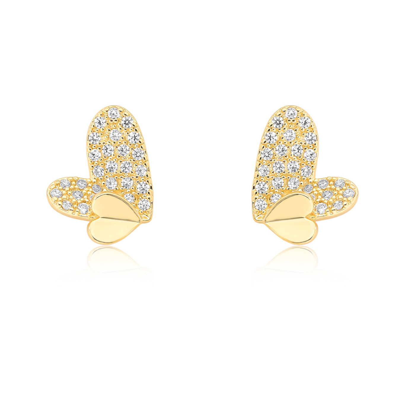 Modelo fixo, coração cravejado com mini coração liso sobreposto na lateral inferior.