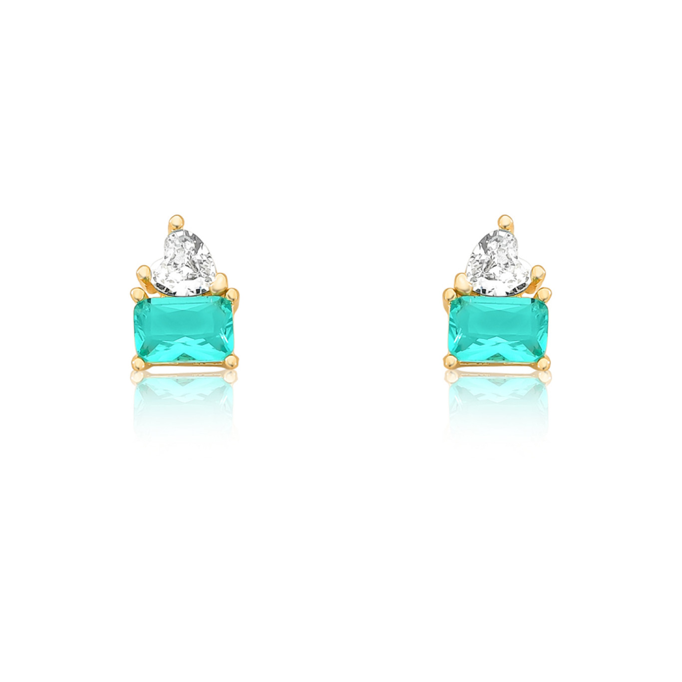 Modelo fixo, com zircônia retangular turmalina e uma zircônia coração cristal anexada na lateral.