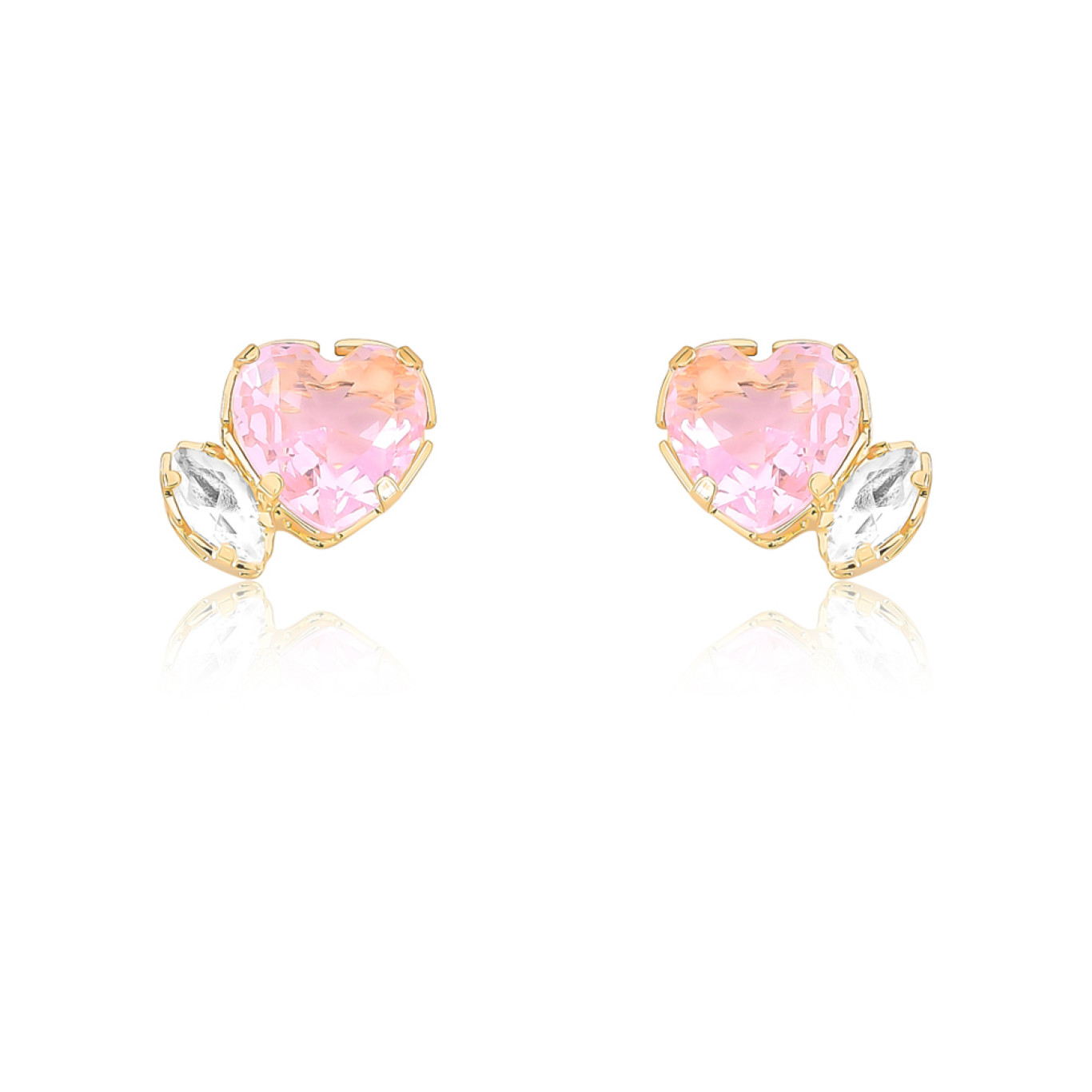 Modelo fixo, com zircônia coração rosa e uma zircônia navete citrino menor anexada na lateral.
