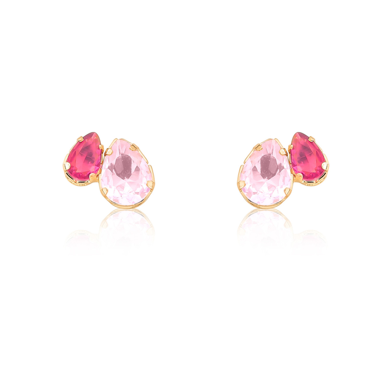 Modelo fixo, com zircônia gota rosa e uma zircônia gota rubelita menor anexada na lateral.