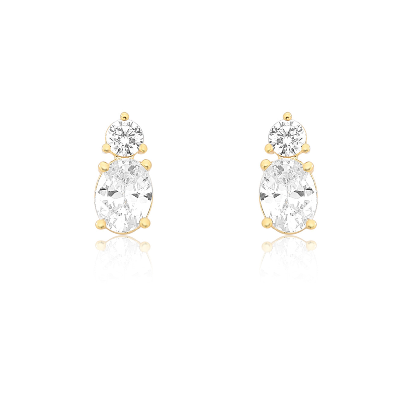 Brinco Fixo Zircônia Oval e Redonda Folheado a Ouro 18k