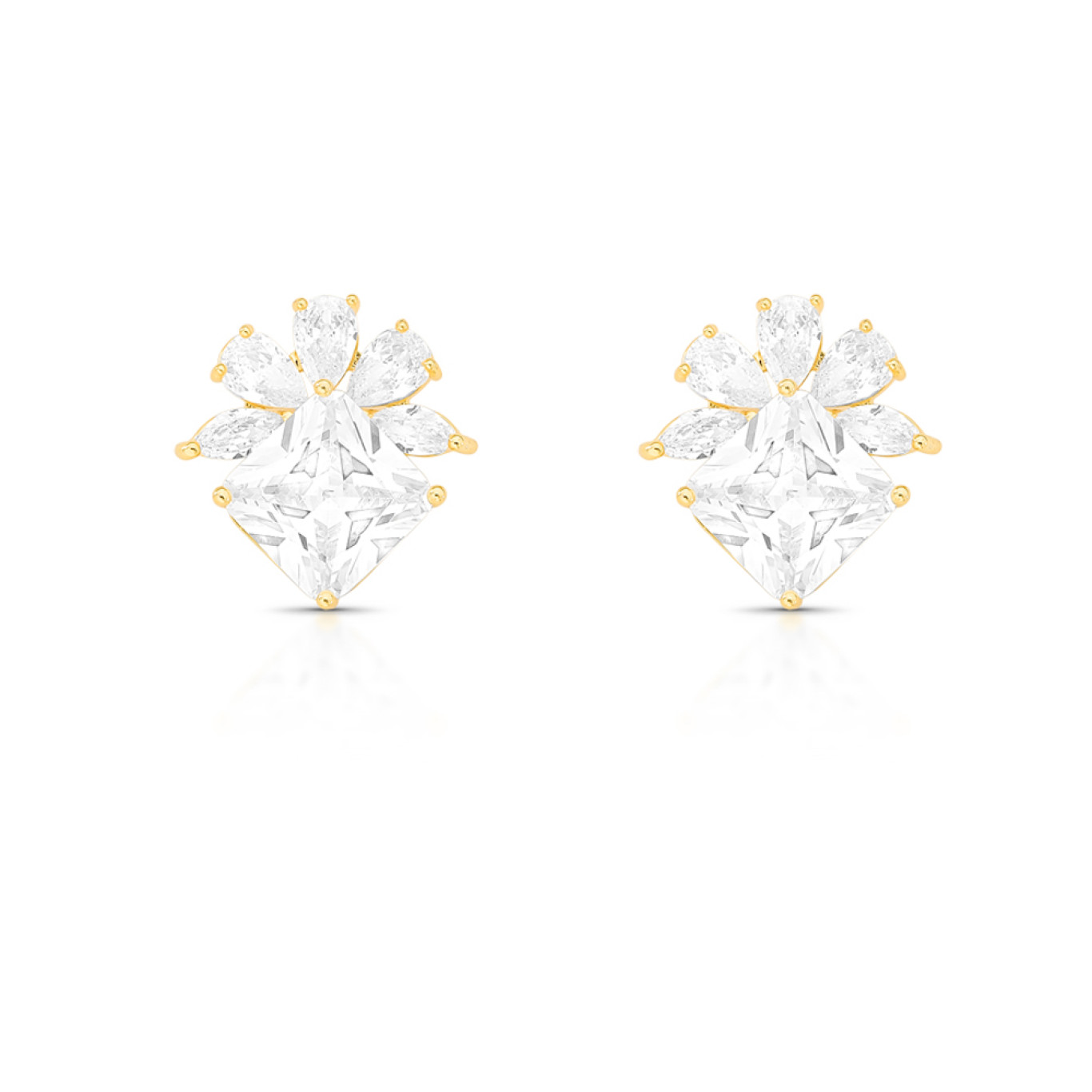 Modelo com pedras de zircônias, uma quadrada, três gotas e duas navetes.