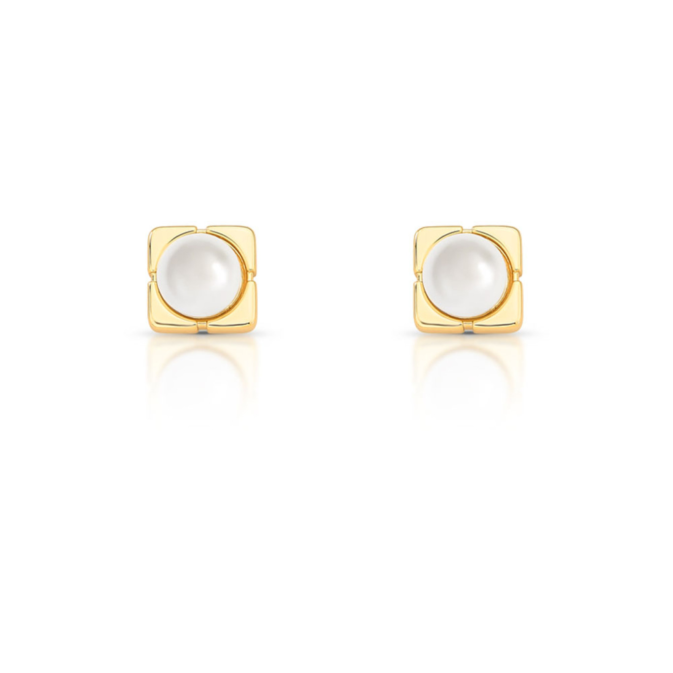 Brinco Quadrado Liso c/ Pérola 9mm Folheado a Ouro 18K