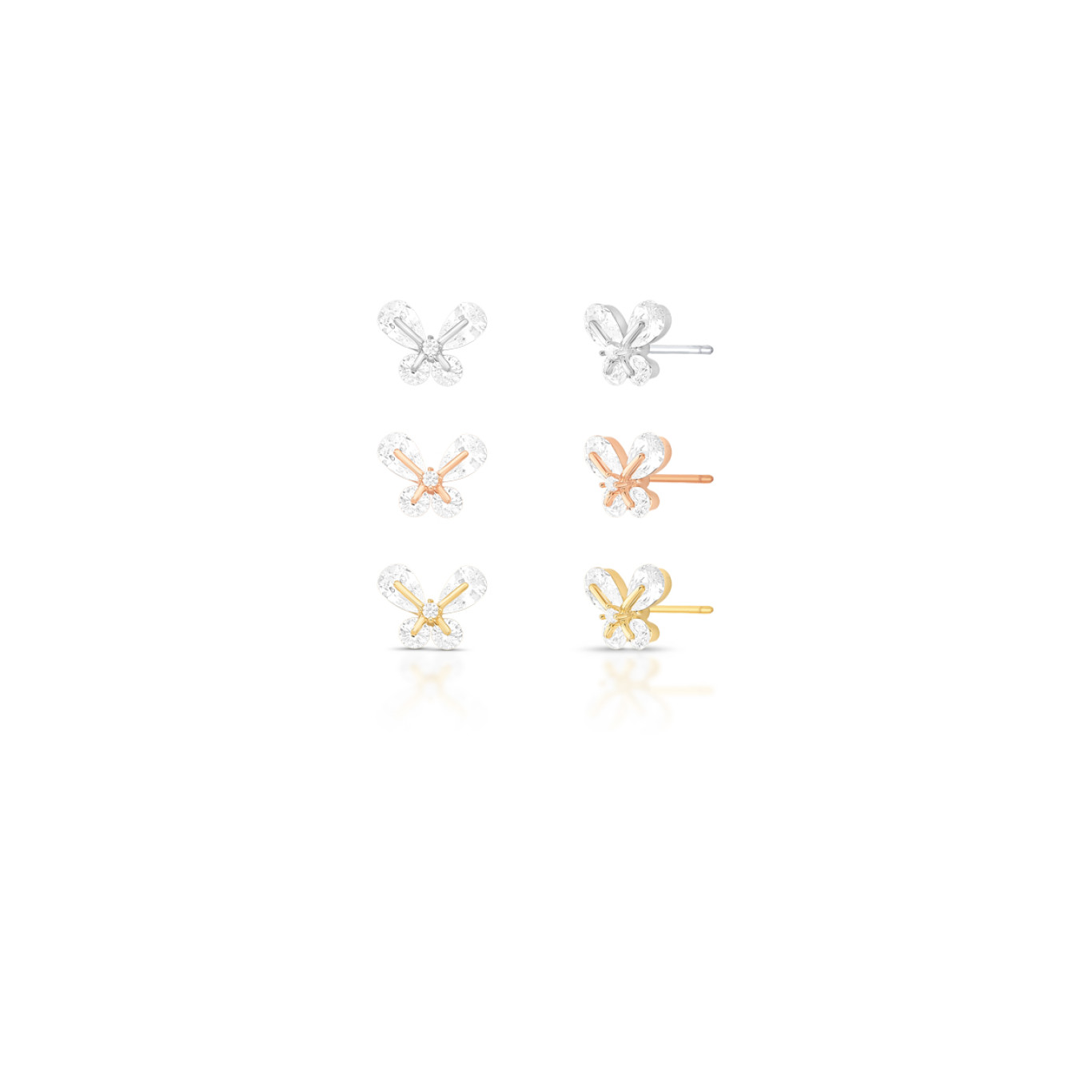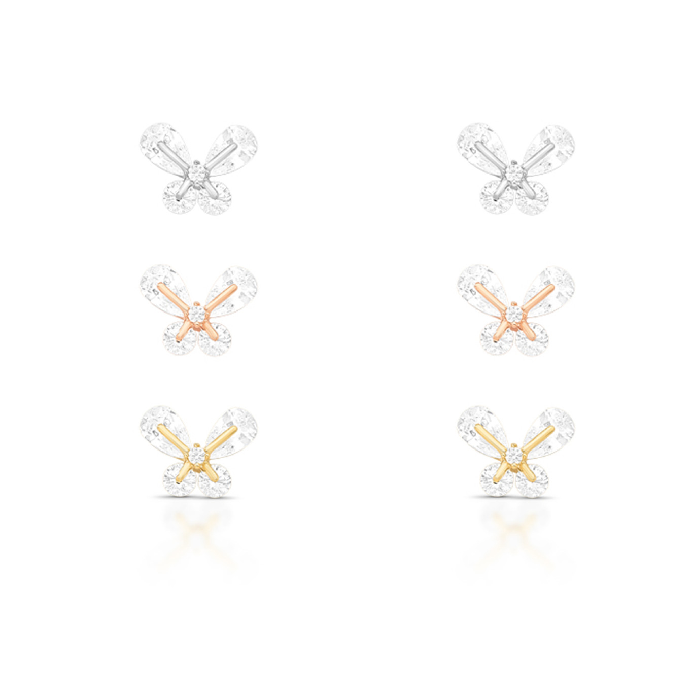 Kit composto por 3 pares de brincos de pino no formato de borboletas com pedras de zircônia, delicados e cheios de brilho.