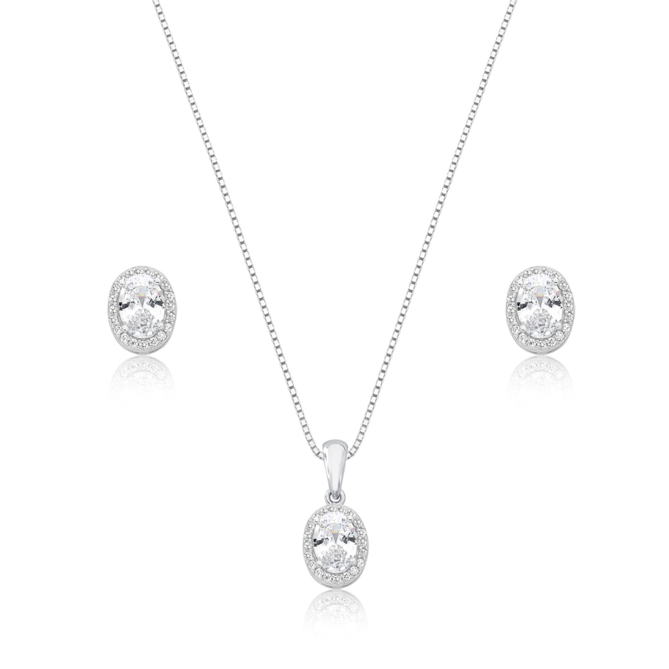 Conjunto sofisticado confeccionado em Prata Legítima 925 com acabamento em Ródio, que garante maior proteção contra oxidação, arranhões e proporciona brilho intenso.