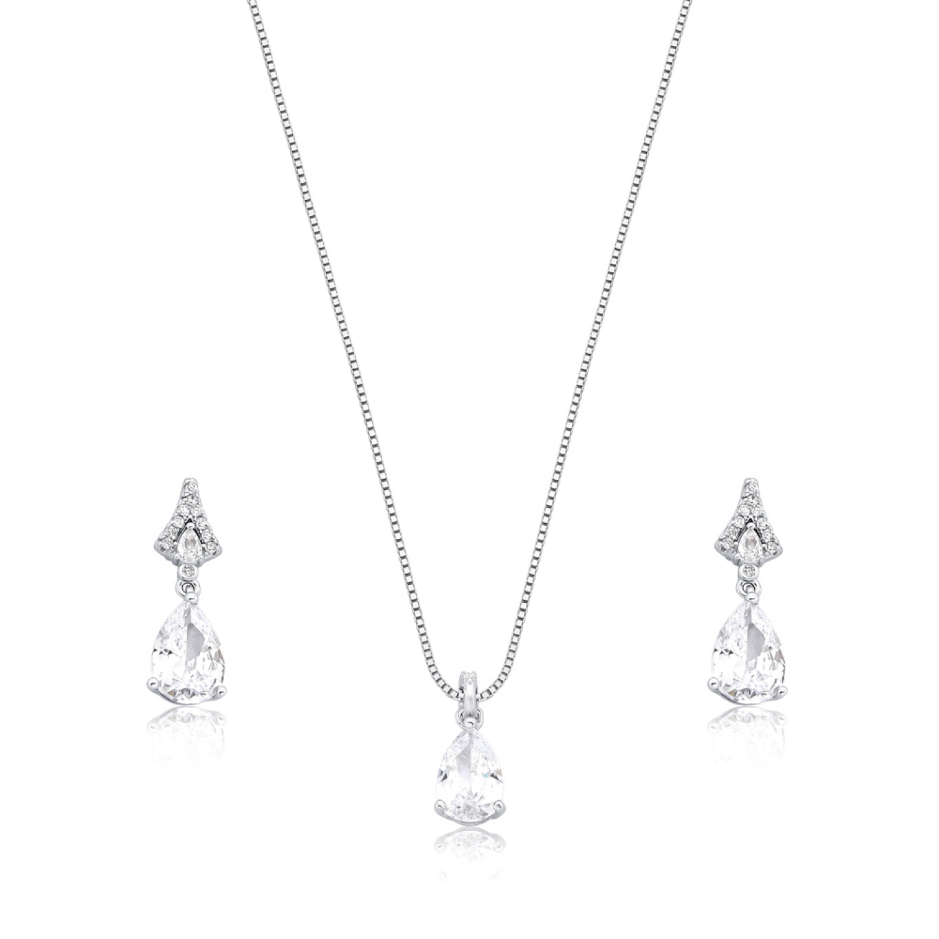 Conjunto sofisticado confeccionado em Prata Legítima 925 com acabamento em Ródio, que garante maior proteção contra oxidação, arranhões e proporciona brilho intenso.