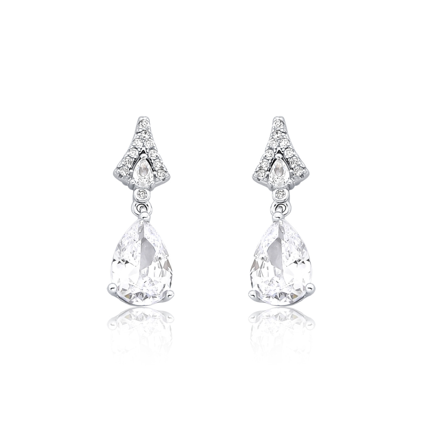 Brincos de pino no formato gota suspensa de zircônia e base cravejada.