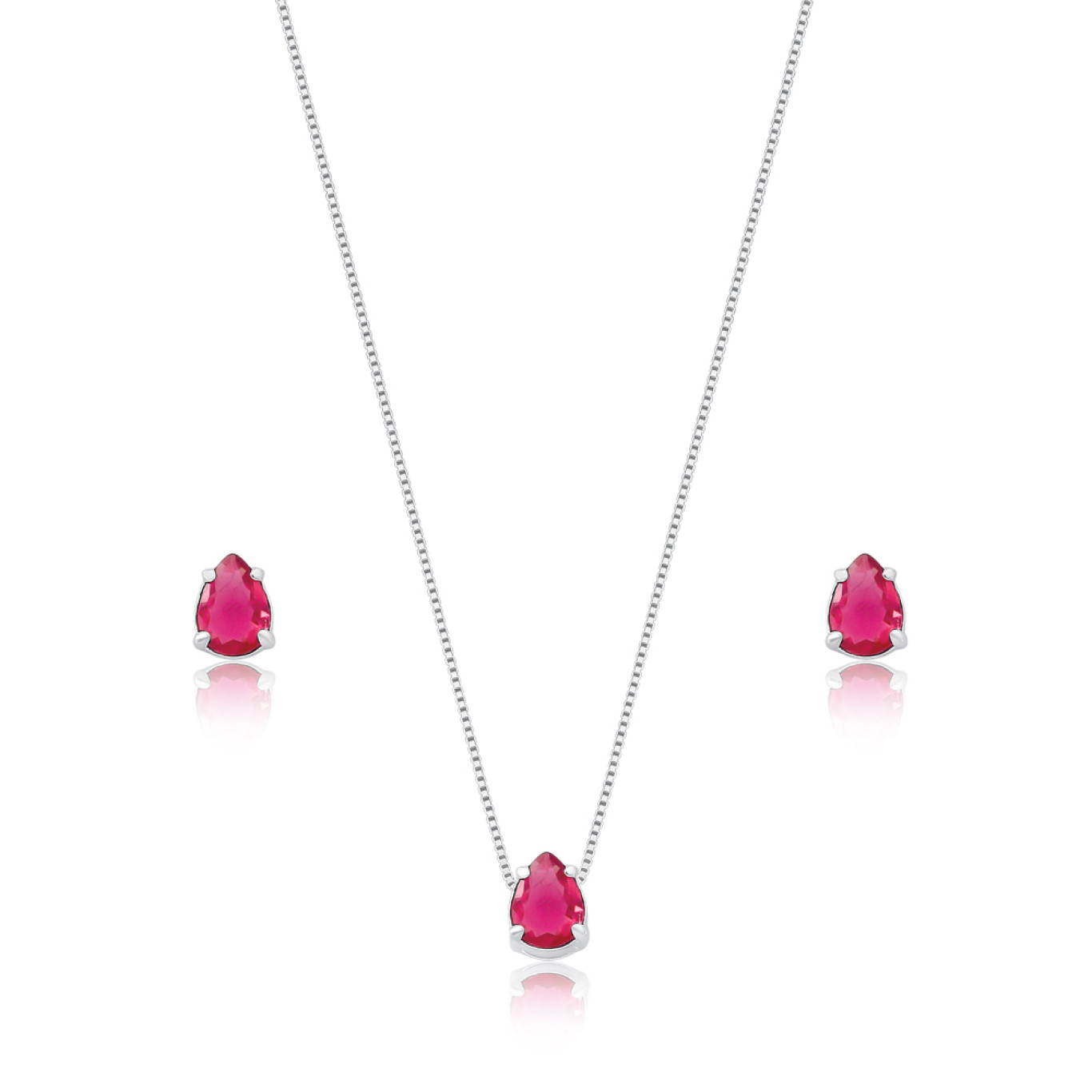 Brincos fixos de pino no formato gota com zircônia na cor Rubi.
