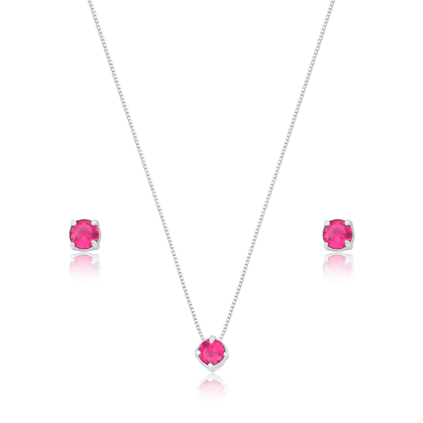 Brincos fixos de pino no formato redondo com zircônia na cor Rubi.