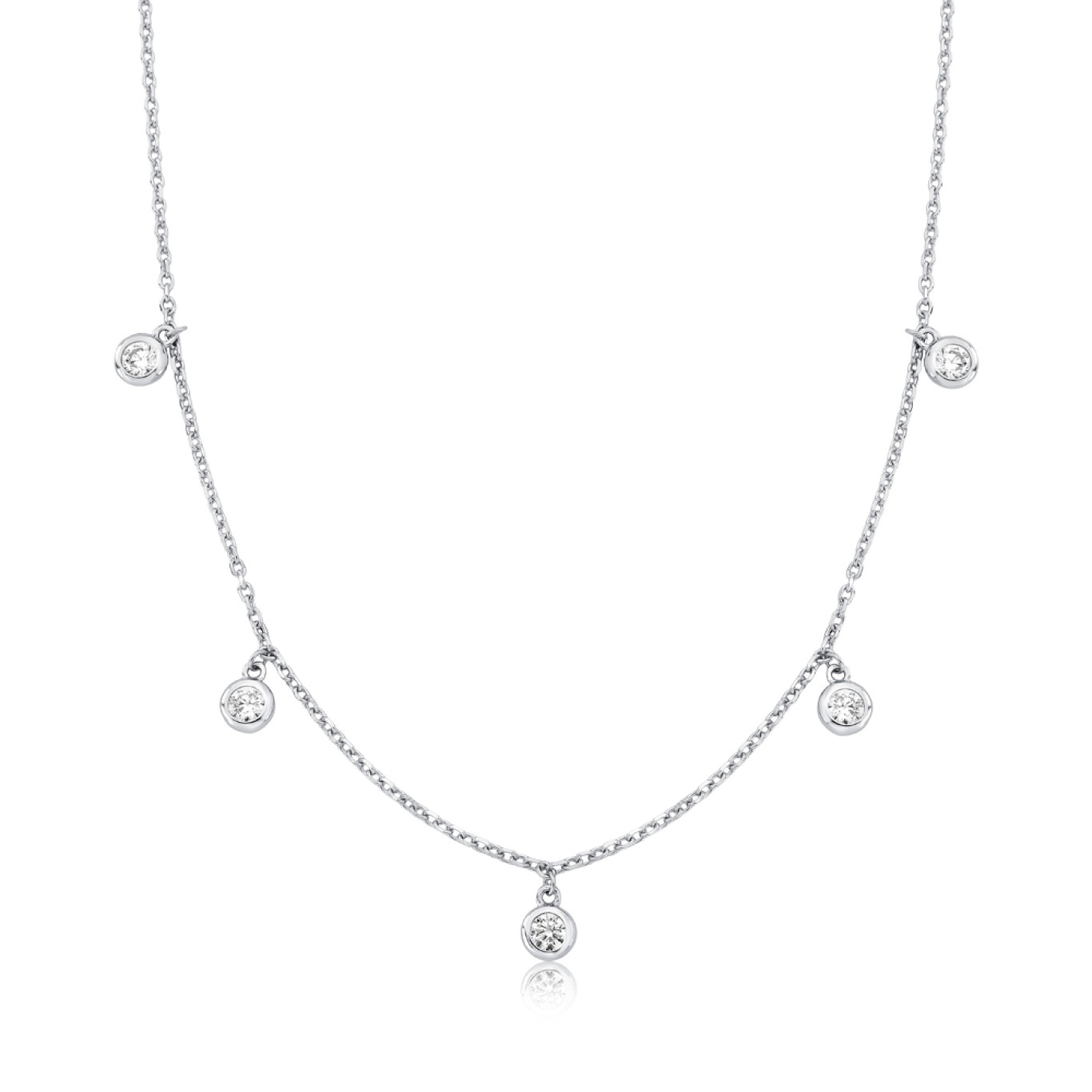 Modelo malha cartiezinha com 5 pingentes suspensos de zircônias pontos luz embutidas na prata.