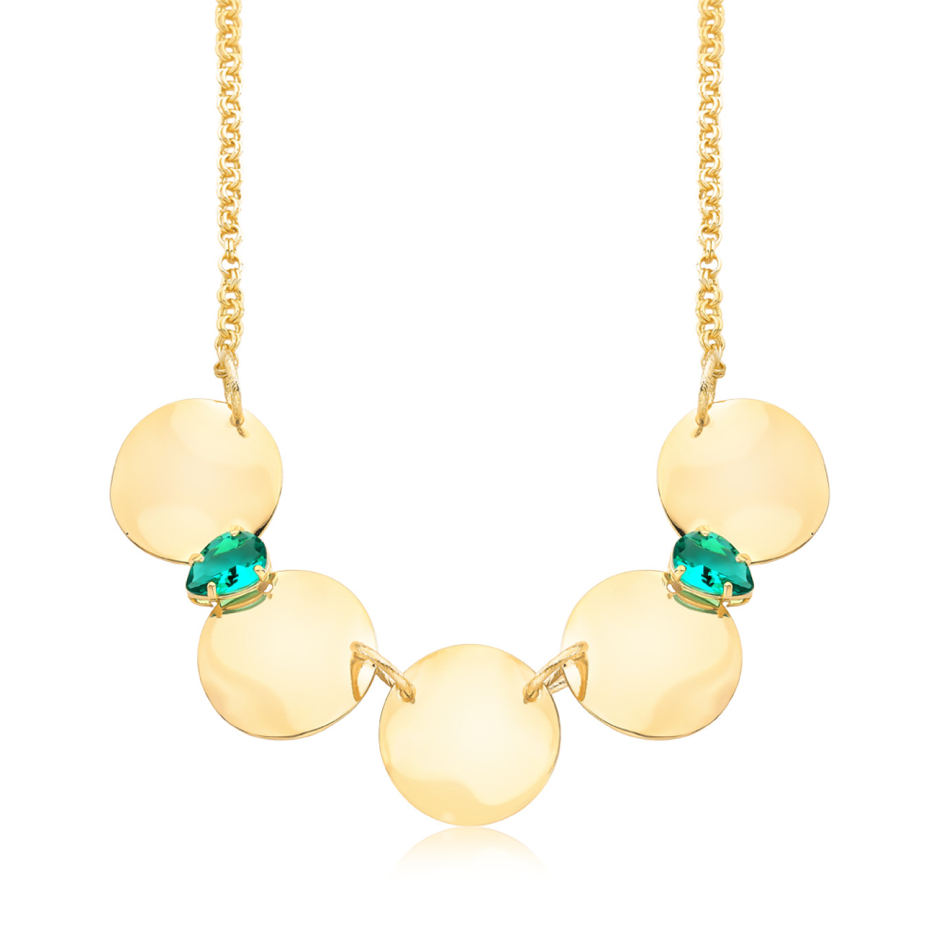 Malha portuguesinha com 5 redondas lias e 2 zircônias gotas cor verde paraíba.