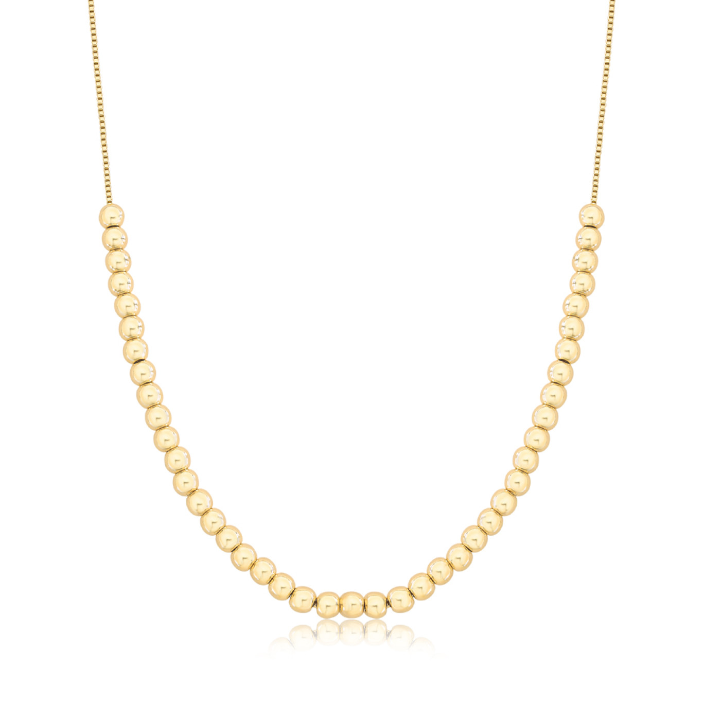 Corrente malha veneziana com bolinhas lisas que correm na corrente.
