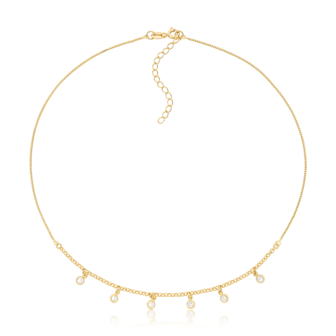 Corrente malha veneziana e portuguesinha com 6 pingentes pontos luz de zircônias.