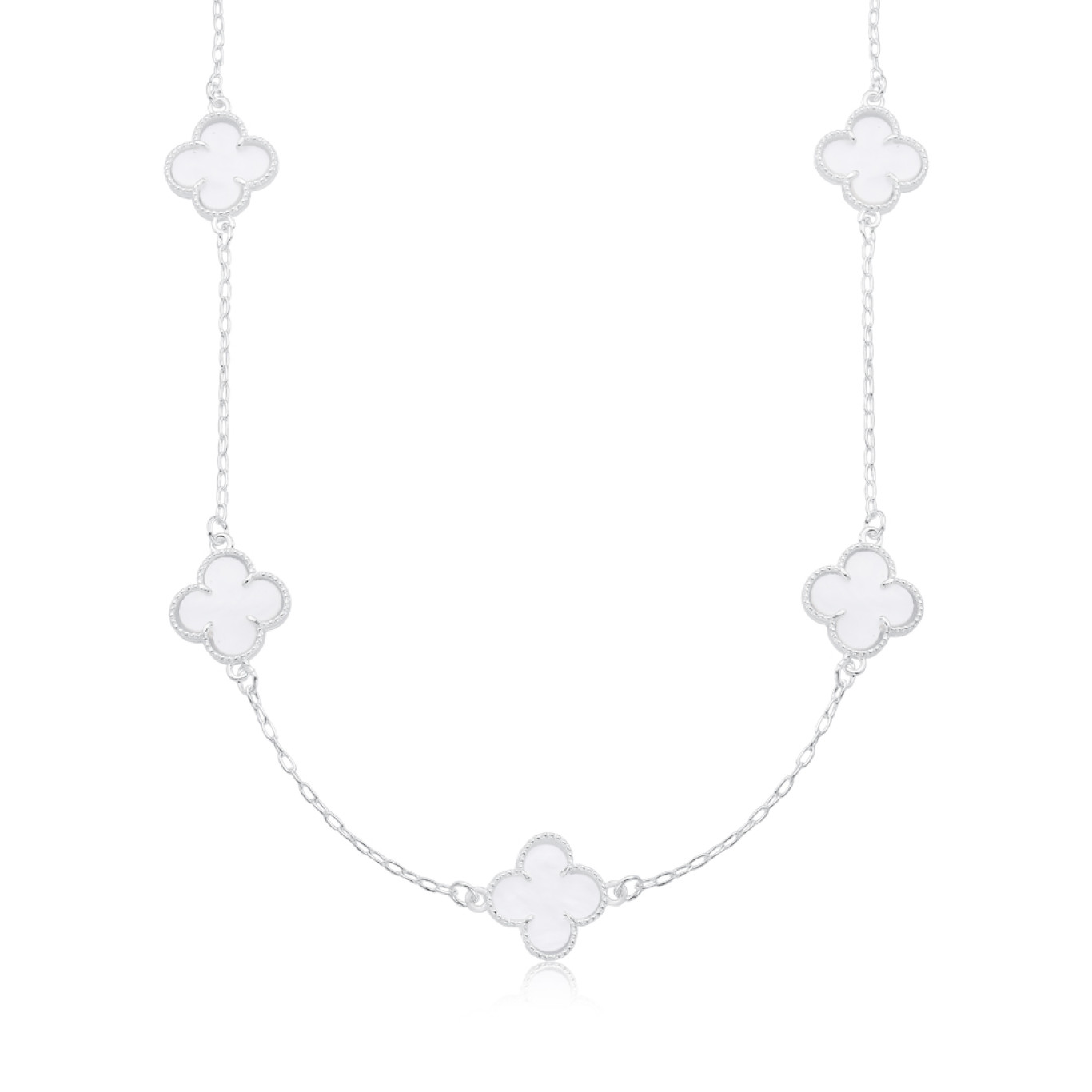 Malha cartier com 5 pingentes fixos "trevo" de madre pérola.