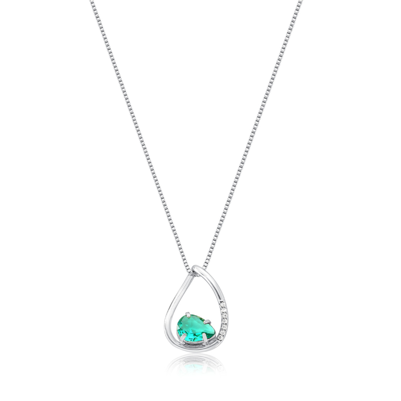 Gargantilha Prata Leve Aro Duplo c/ Zircônia Gota Verde Paraíba