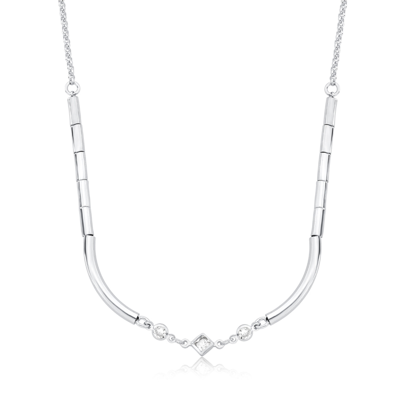 Brinco Prata Leve Elos Lisos c/ Elo Central Cravejado