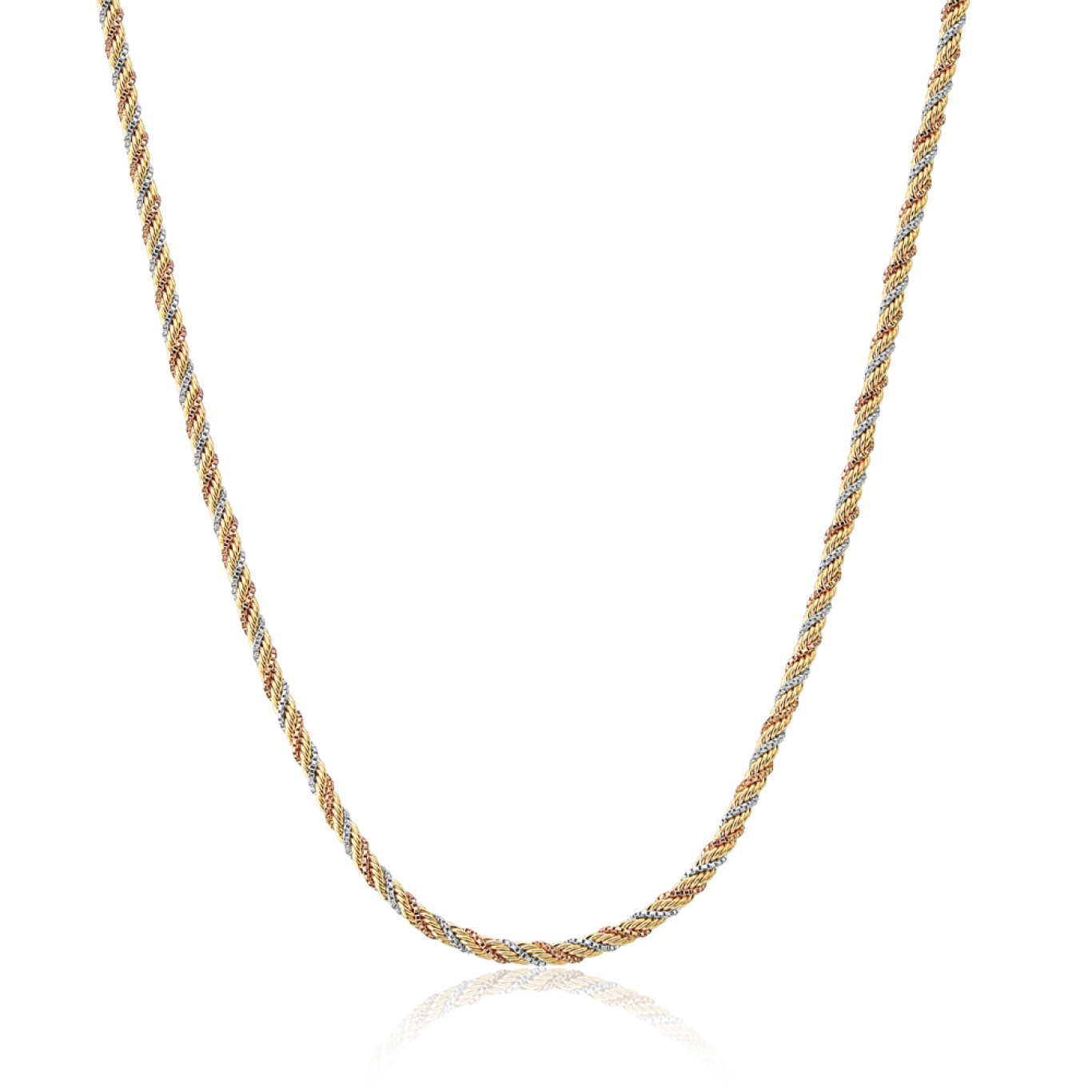 Pulseira Cordão Baiano Três tons de Ouro 18cm (4mm) Folheada a Ouro 18k