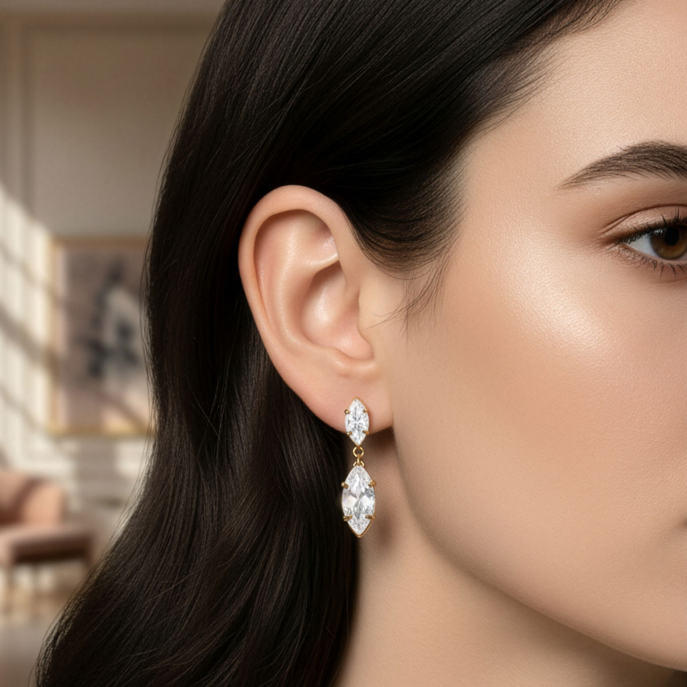 Tornozeleira Zircônias Navetes Embutidas Folheada a Ouro 18k