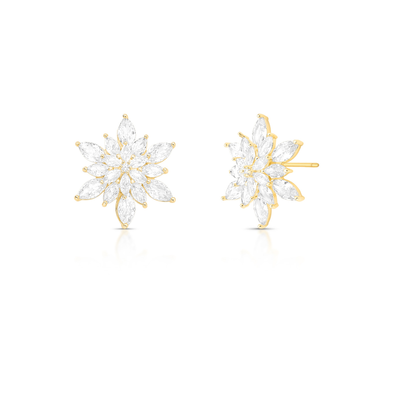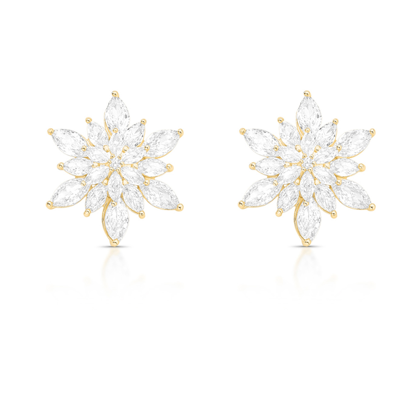 Modelo flores sobrepostas cravejadas com zircônias navetes.