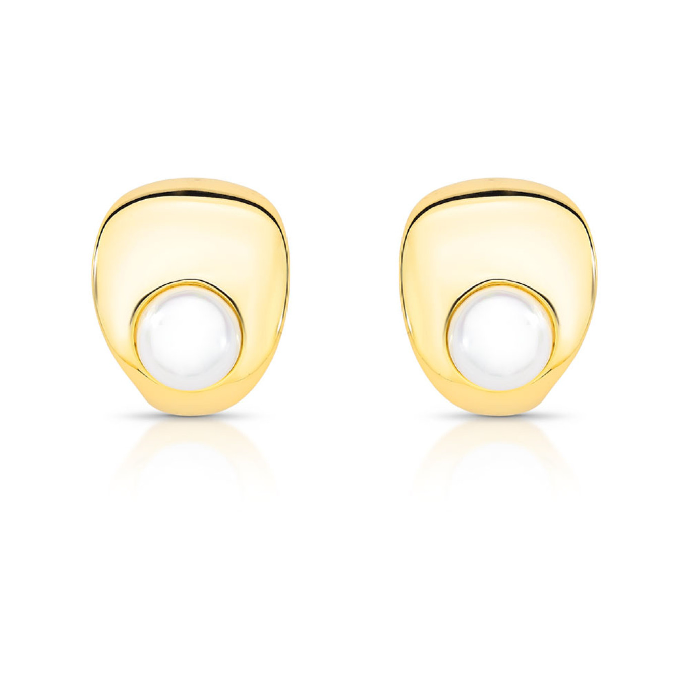 Brinco Base Lisa Ondulada c/ Pérola Folheado a Ouro 18k