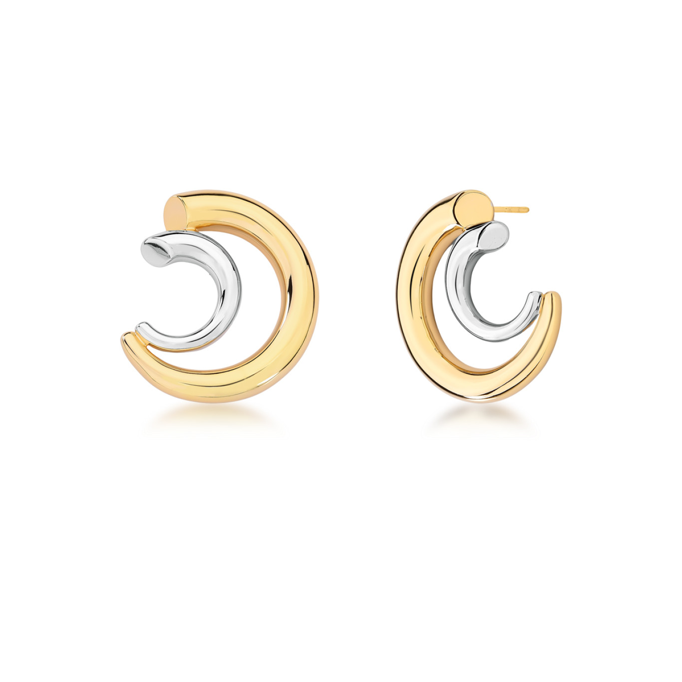 Brinco Prata Leve Elos Lisos c/ Elo Central Cravejado