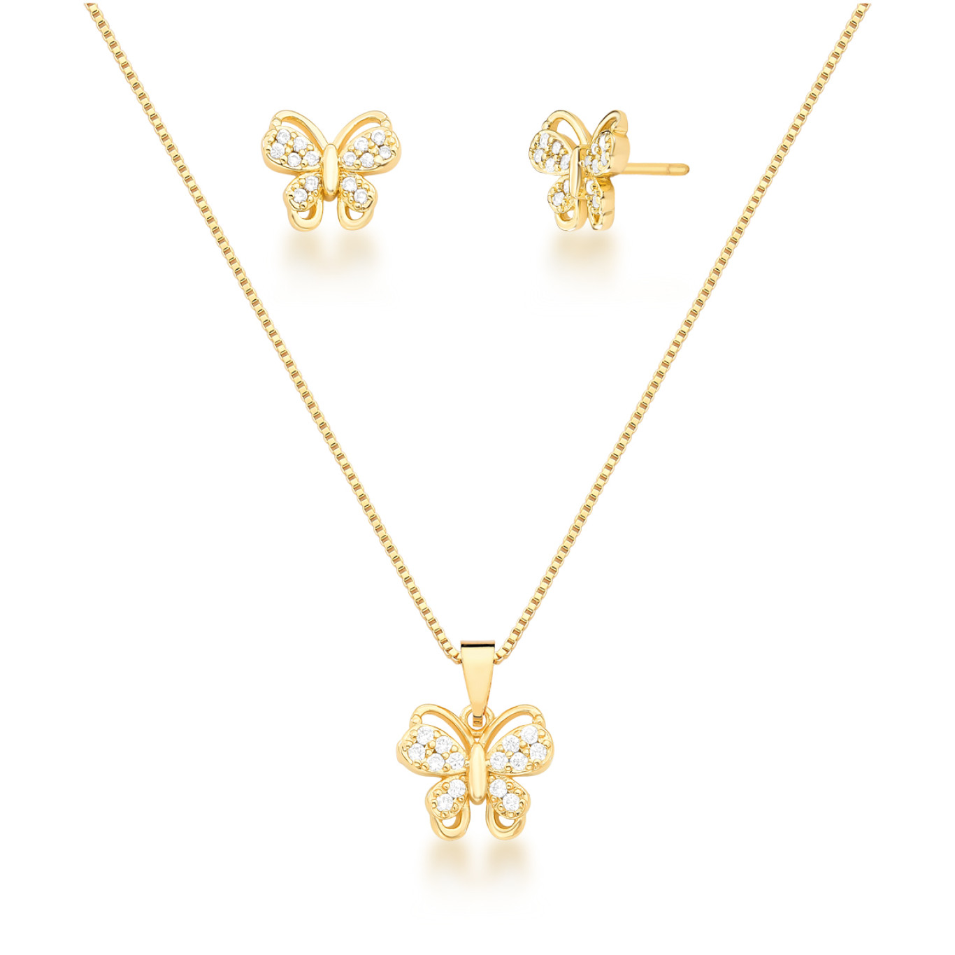Brinco Fixo Borboleta Vazada Mini Folheado a Ouro 18k