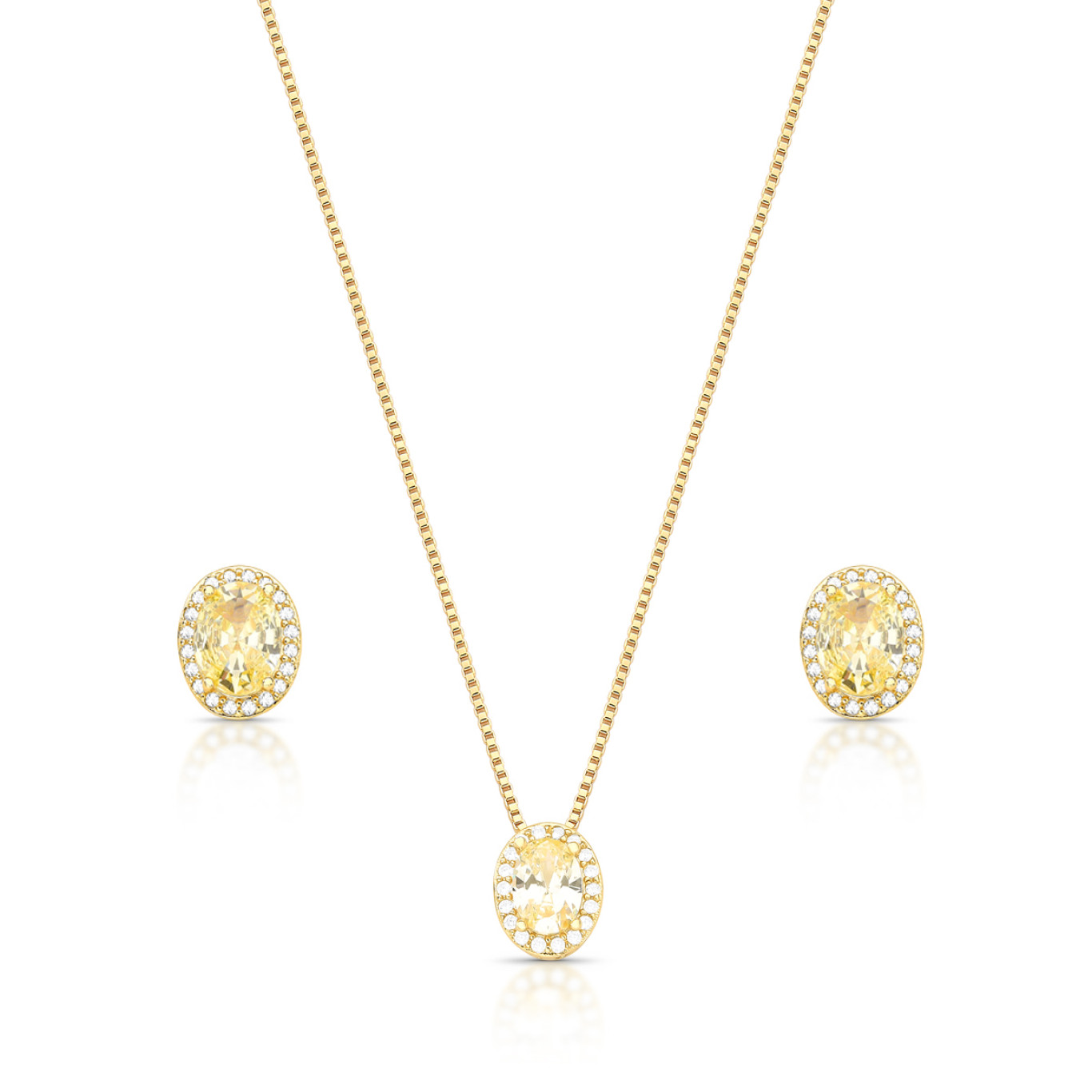 Brincos de pino, formato oval com zircônia na cor citrino, e com borda cravejada.