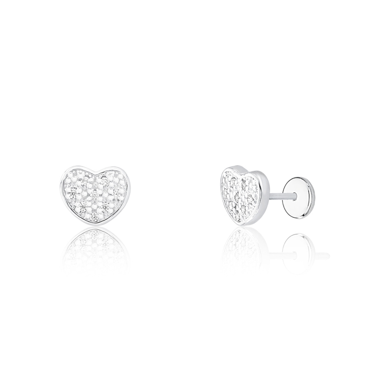 Modelo infantil fixo, coração com pedras de zircônia cravejado.