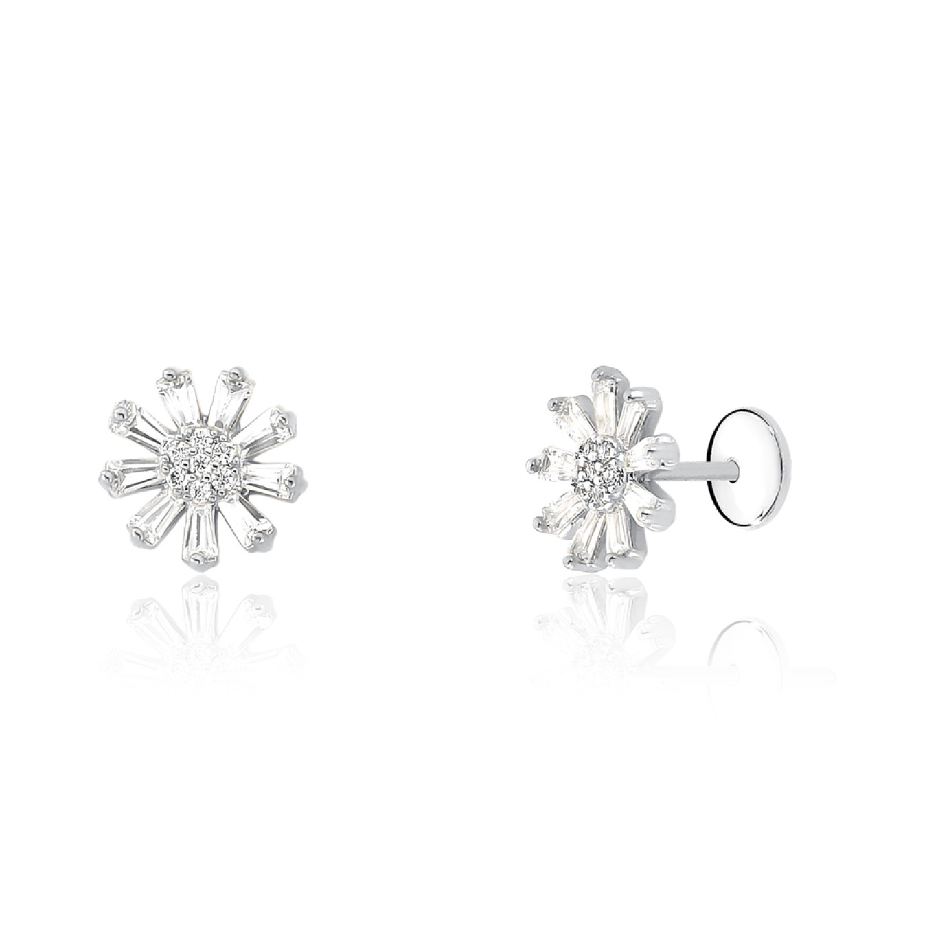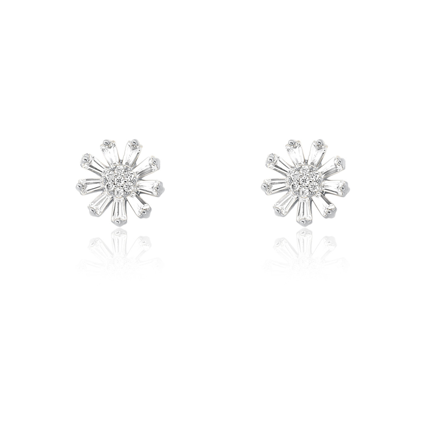 Lindo e delicado, modelo fixo formato sol cravejado de zircônia baguete. .
