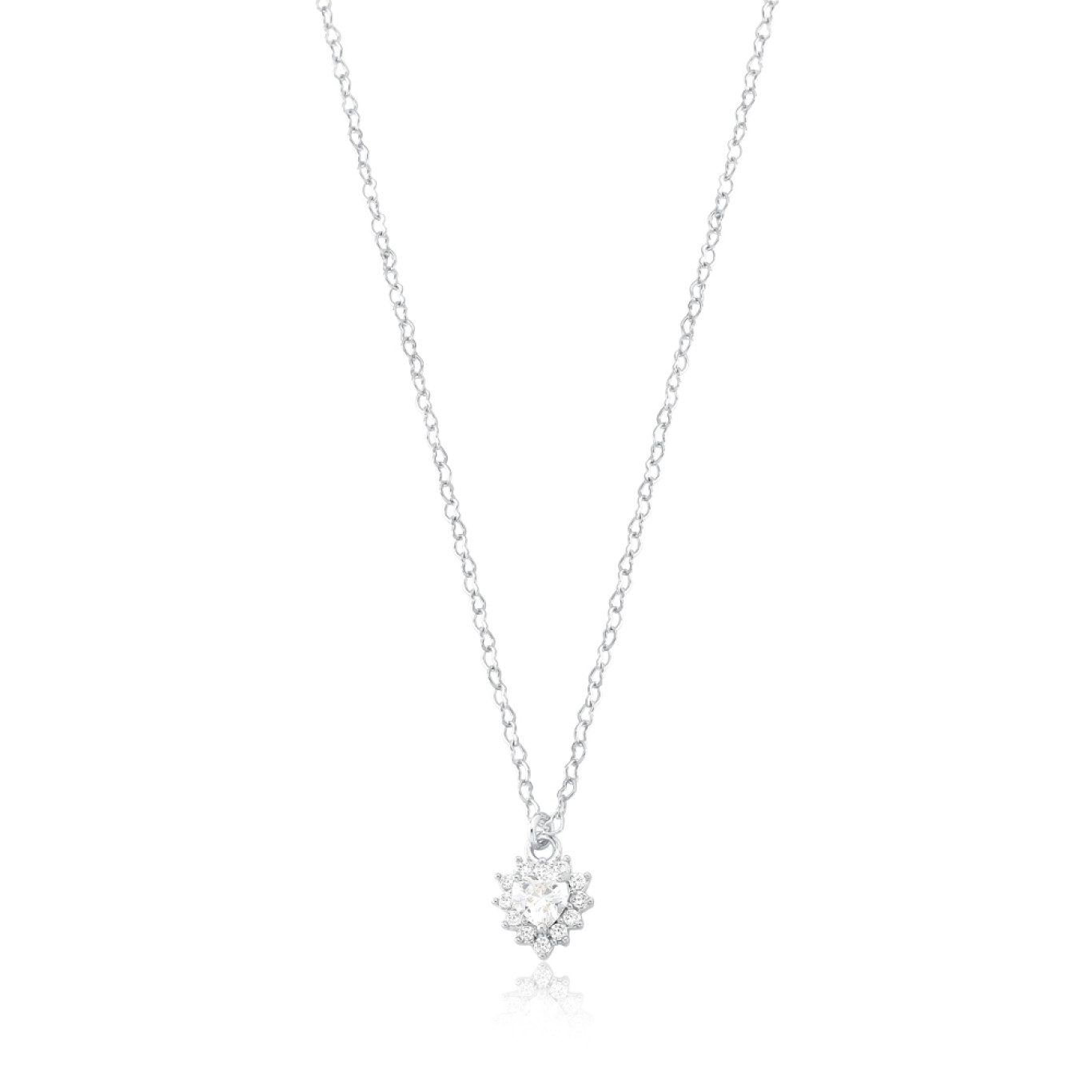 Gargantilha Prata Infantil c/ Pingente Mini Coração Cravejado