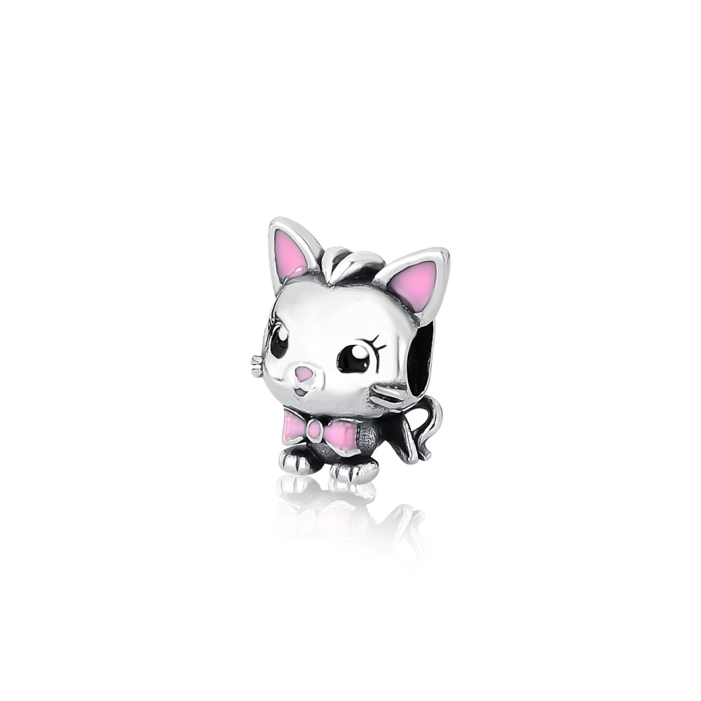 Modelo separador gatinha sentada, detalhe orelhinha e gravata resina rosa.