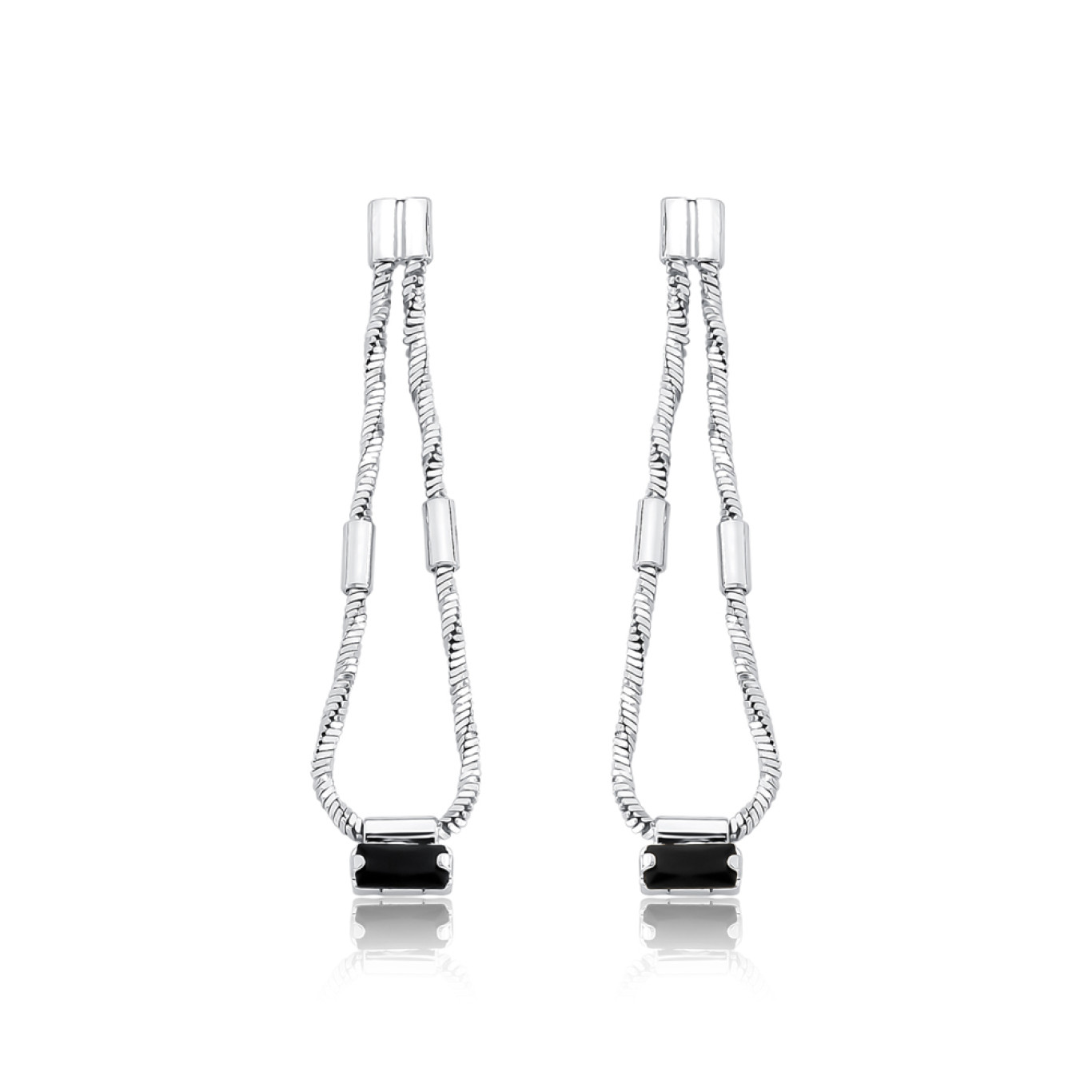 Modelo suspenso com zircônia retangular negra, tubinhos lisos.