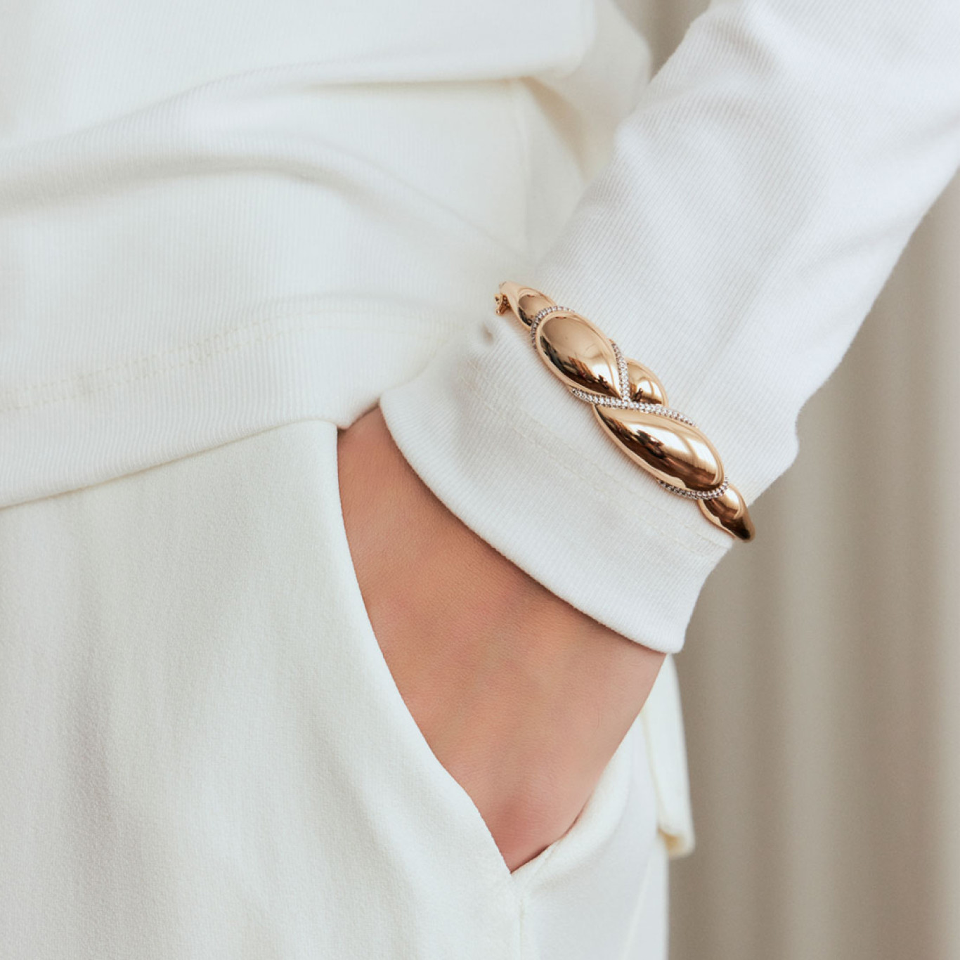 Modelo abaulado com detalhes cravejados com zircônias.