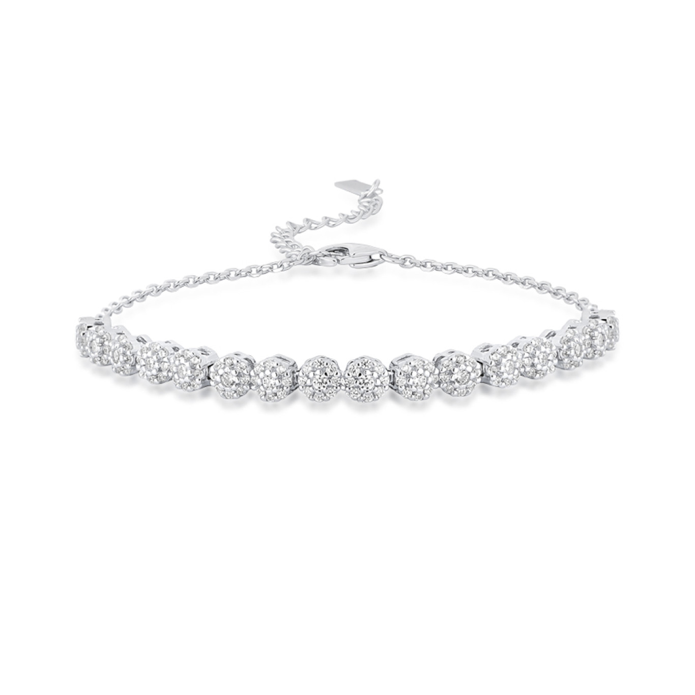 Malha cartierzinha com 16 flores todas cravejadas com zircônia no centro.