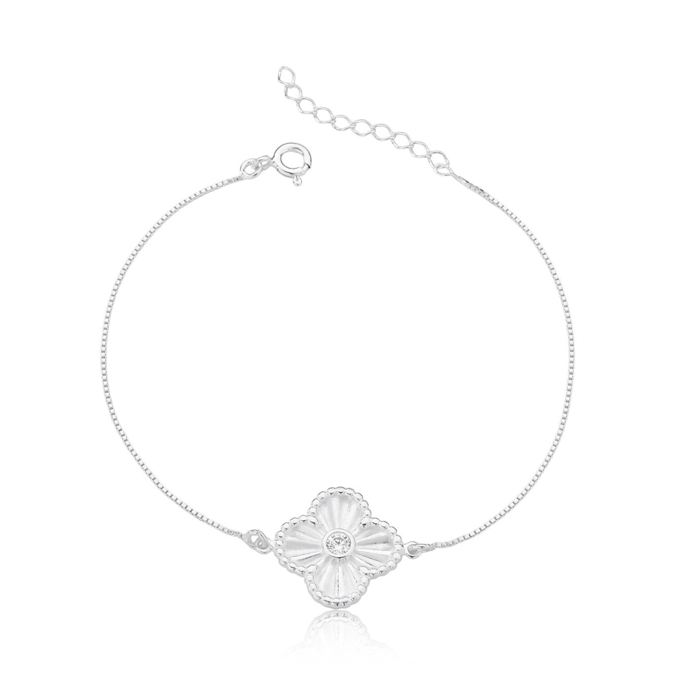 Malha veneziana com um trevo fixo com uma zircônia central. .