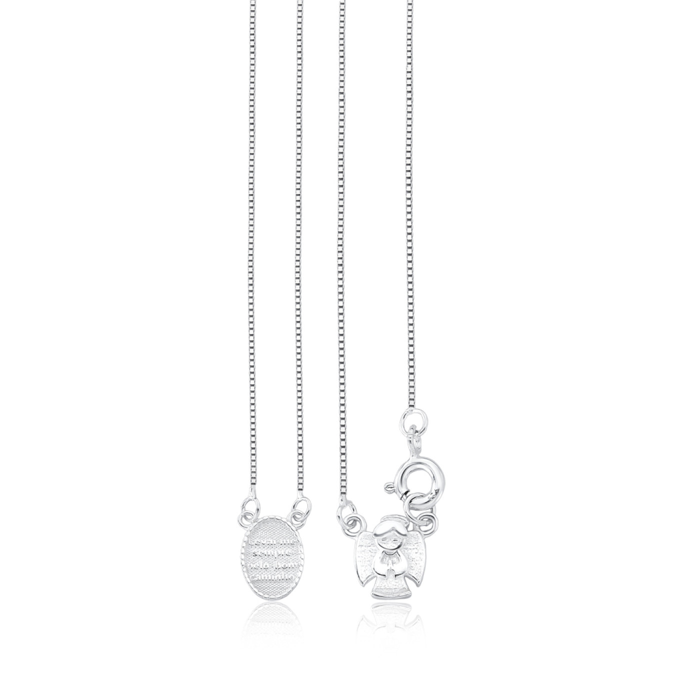 Escapulário Prata Infantil Oração Santo Anjo 40cm (Curto)